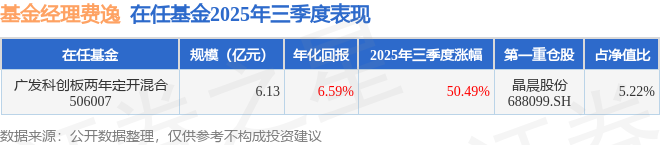 证券之星消息,截止2025年三季度末,基金经理费逸管理的广发科创板两年定开混合(506007)季度净值涨50.49%。