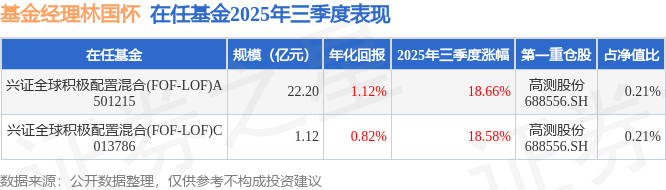 证券之星消息,截止2025年三季度末,基金经理林国怀旗下共管理2只基金,本季度表现最佳的为兴证全球积极配置混合(FOF-LOF)A(501215),季度净值涨18.66%。