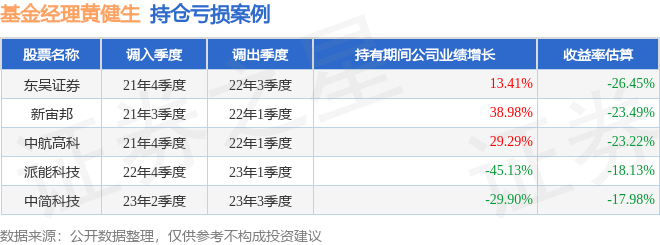 黄健生管理的易方达中证500指数量化增强A基金在21年4季度买入东吴证券,在持有3个季度后在22年3季度卖出。持有期间的估算收益率为-26.45%,持有期间东吴证券在2021年到2022年的年报营业总收入增幅达13.41%。
