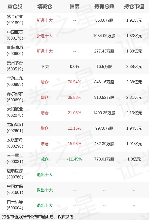证券之星消息,10月28日易方达基金旗下王晓晨 王丹管理的易方达裕祥回报债券型基金公布三季报,近1年净值增长率6.95%。与上一季度相比,该基金前十大重仓股新增紫金矿业,中国巨石,青岛啤酒;其中贵州茅台持仓占比0.73%,为该基金第一大重仓股;迈瑞医疗,中国太保,白云机场等退出前十大重仓股;详细数据如下: