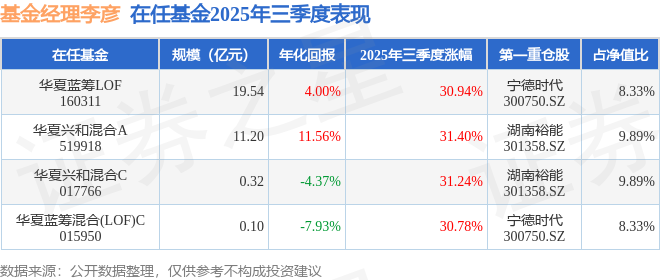 证券之星消息,截止2025年三季度末,基金经理李彦旗下共管理4只基金,本季度表现最佳的为华夏兴和混合A(519918),季度净值涨31.4%。