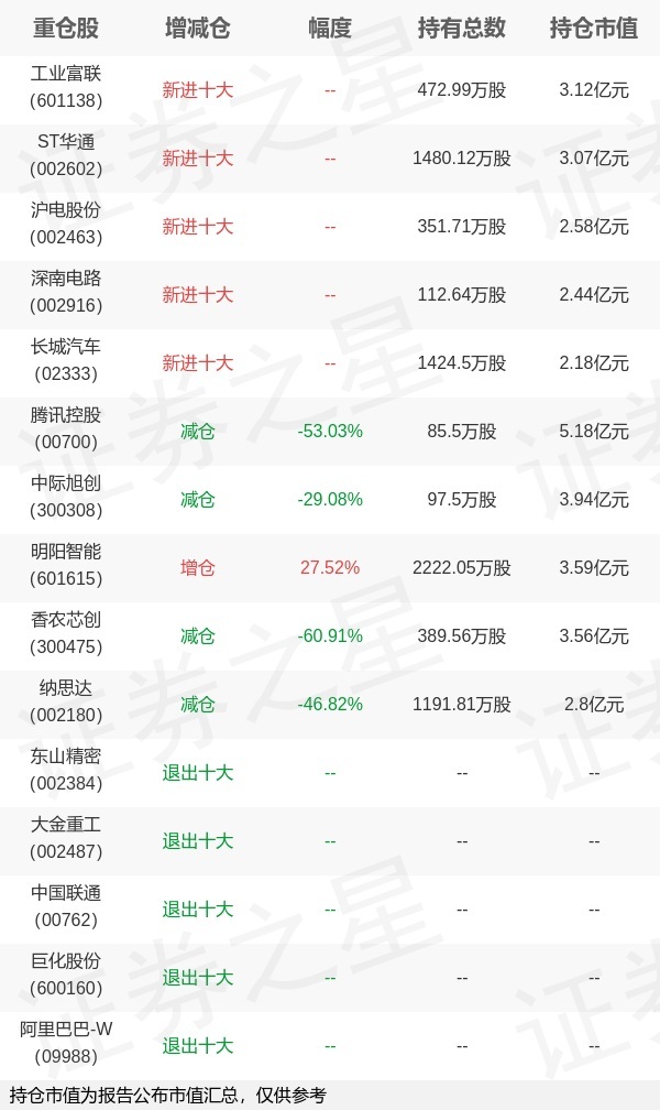 证券之星消息,10月28日易方达基金旗下陈皓管理的易方达品质动能三年持有期混合型基金公布三季报,近1年净值增长率69.13%。与上一季度相比,该基金前十大重仓股新增工业富联,ST华通,沪电股份,深南电路,长城汽车;其中腾讯控股持仓占比8.16%,为该基金第一大重仓股;东山精密,大金重工,中国联通,巨化股份,阿里巴巴-W等退出前十大重仓股;详细数据如下: