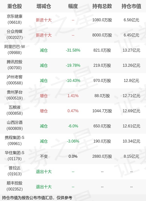 证券之星消息,10月28日易方达基金旗下张坤管理的易方达优质精选混合型基金公布三季报,近1年净值增长率10.98%。与上一季度相比,该基金前十大重仓股新增京东健康,分众传媒;其中阿里巴巴-W持仓占比9.94%,为该基金第一大重仓股;普拉达,顺丰控股等退出前十大重仓股;详细数据如下: