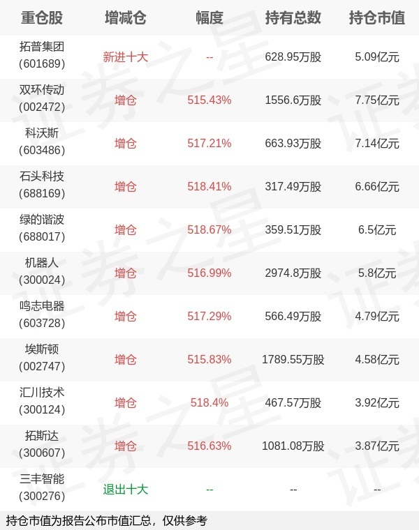 证券之星消息,10月28日易方达基金旗下李栩 李树建管理的易方达国证机器人产业交易型开放式指数基金公布三季报,近1年净值增长率42.93%。与上一季度相比,该基金前十大重仓股新增拓普集团;并对双环传动增仓1303.67万股,为该基金第一大重仓股;三丰智能等退出前十大重仓股;详细数据如下: