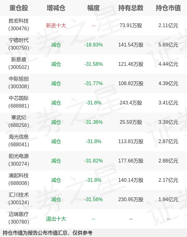 证券之星消息,10月28日华夏基金旗下徐猛管理的华夏中证科创创业50交易型开放式指数基金公布三季报,近1年净值增长率61.41%。与上一季度相比,该基金前十大重仓股新增胜宏科技;其中宁德时代持仓占比10.74%,为该基金第一大重仓股;迈瑞医疗等退出前十大重仓股;详细数据如下: