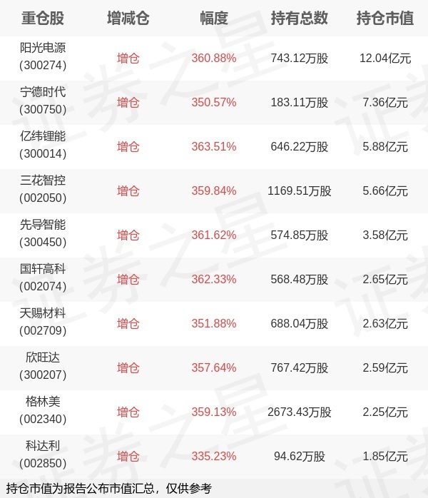 证券之星消息,10月28日汇添富基金旗下董瑾 罗昊管理的汇添富中证电池主题交易型开放式指数基金公布三季报,近1年净值增长率52.66%。并对阳光电源增仓581.88万股,为该基金第一大重仓股;详细数据如下: