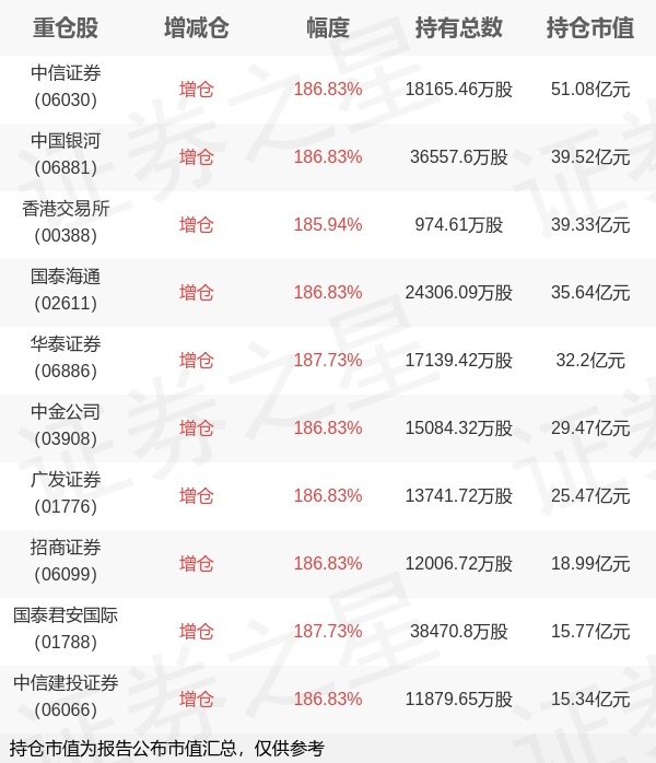 证券之星消息,10月28日易方达基金旗下宋钊贤管理的易方达中证香港证券投资主题交易型开放式指数基金公布三季报,近1年净值增长率59.85%。并对中信证券增仓11832.35万股,为该基金第一大重仓股;详细数据如下: