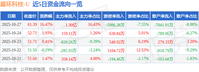 证券之星消息,截至2025年10月27日收盘,星环科技(688031)报收于61.39元,上涨16.47%,换手率14.41%,成交量13.54万手,成交额7.93亿元。