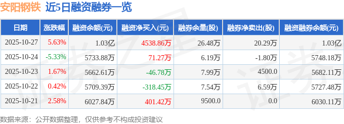 证券之星消息,截至2025年10月27日收盘,安阳钢铁(600569)报收于2.44元,上涨5.63%,换手率5.47%,成交量157.1万手,成交额3.87亿元。