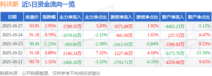 10月27日的资金流向数据方面,主力资金净流入2789.35万元,占总成交额3.2%,游资资金净流入1675.88万元,占总成交额1.92%,散户资金净流出4465.23万元,占总成交额5.12%。