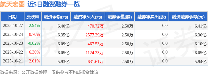 航天宏图融资融券信息显示,融资方面,当日融资买入6301.94万元,融资偿还5831.22万元,融资净买入470.72万元,连续3日净买入累计3515.54万元。融券方面,融券卖出0.0股,融券偿还0.0股,融券余量2.5万股,融券余额80.15万元。融资融券余额6.41亿元。