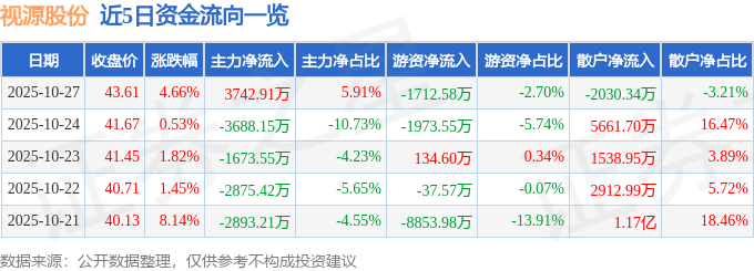 10月27日的资金流向数据方面,主力资金净流入3742.91万元,占总成交额5.91%,游资资金净流出1712.58万元,占总成交额2.7%,散户资金净流出2030.34万元,占总成交额3.21%。