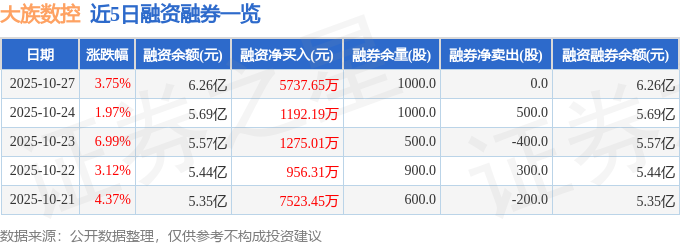 大族数控融资融券信息显示,融资方面,当日融资买入2.02亿元,融资偿还1.45亿元,融资净买入5737.65万元,连续3日净买入累计8204.85万元。融券方面,融券卖出0.0股,融券偿还0.0股,融券余量1000.0股,融券余额11.7万元。融资融券余额6.26亿元。