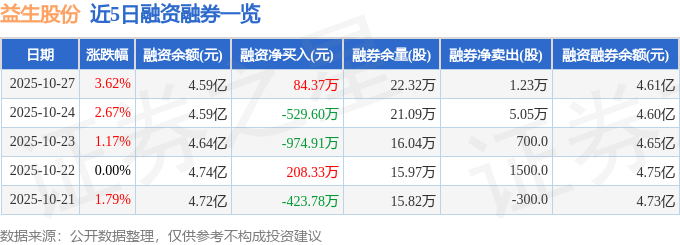 益生股份融资融券信息显示,融资方面,当日融资买入1649.06万元,融资偿还1564.69万元,融资净买入84.37万元。融券方面,融券卖出1.3万股,融券偿还700.0股,融券余量22.32万股,融券余额204.67万元。融资融券余额4.61亿元。