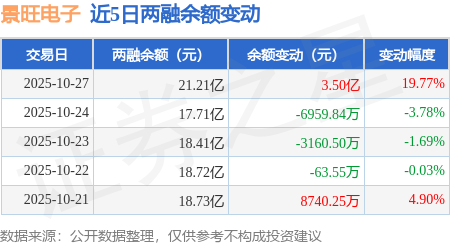 证券之星消息,10月27日,景旺电子(603228)融资买入6.28亿元,融资偿还2.83亿元,融资净买入3.44亿元,融资余额21.07亿元,当日融资净买入排名第19。