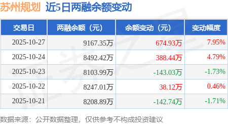证券之星消息,10月27日,苏州规划(301505)融资买入2040.94万元,融资偿还1366.01万元,融资净买入674.93万元,融资余额9167.35万元。