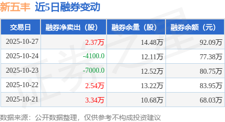 证券之星消息,10月27日,新五丰(600975)融资买入2153.15万元,融资偿还1661.64万元,融资净买入491.51万元,融资余额2.19亿元,近3个交易日已连续净买入累计915.48万元。