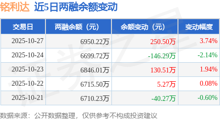 融资融券余额6950.22万元,较昨日上涨3.74%。