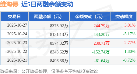 证券之星消息,10月27日,维海德(301318)融资买入598.62万元,融资偿还353.83万元,融资净买入244.79万元,融资余额8375.92万元。