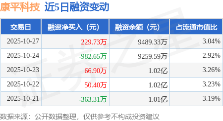 证券之星消息,10月27日,康平科技(300907)融资买入1208.88万元,融资偿还979.14万元,融资净买入229.73万元,融资余额9489.33万元。