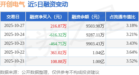 证券之星消息,10月27日,开创电气(301448)融资买入1183.42万元,融资偿还966.55万元,融资净买入216.87万元,融资余额9503.98万元。