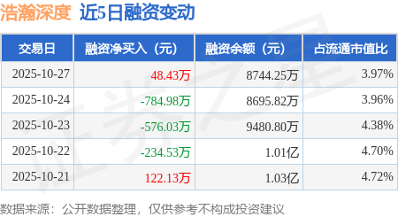 证券之星消息,10月27日,浩瀚深度(688292)融资买入589.96万元,融资偿还541.53万元,融资净买入48.43万元,融资余额8744.25万元。