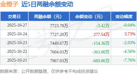 证券之星消息,10月27日,金橙子(688291)融资买入983.27万元,融资偿还986.7万元,融资净卖出3.42万元,融资余额7723.78万元。
