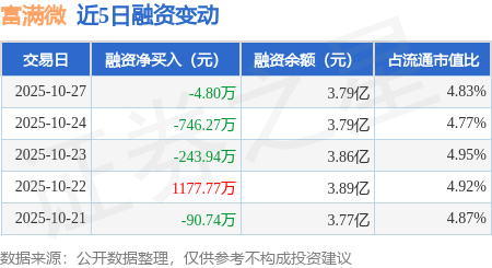 证券之星消息,10月27日,富满微(300671)融资买入2047.6万元,融资偿还2052.4万元,融资净卖出4.8万元,融资余额3.79亿元。
