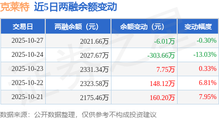 证券之星消息,10月27日,克莱特(920689)融资买入182.19万元,融资偿还188.2万元,融资净卖出6.01万元,融资余额2021.66万元。
