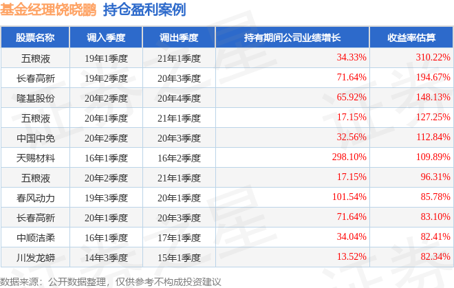 饶晓鹏管理的华安行业轮动混合基金在19年1季度买入五粮液,在持有2年又0个季度后在21年1季度卖出。持有期间的估算收益率为310.22%,持有期间五粮液在2019年到2021年的年报归属净利润增幅达34.33%。