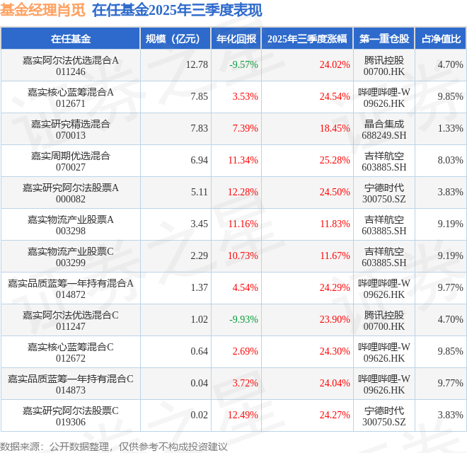 证券之星消息,截止2025年三季度末,基金经理肖觅旗下共管理12只基金,本季度表现最佳的为嘉实周期优选混合(070027),季度净值涨25.28%。