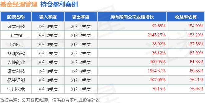 曾理管理的景顺长城中证500ETF联接基金在19年3季度买入闻泰科技,在持有2个季度后在20年1季度卖出。持有期间的估算收益率为154.99%,持有期间闻泰科技在2019年到2020年的年报归属净利润增幅达92.68%。