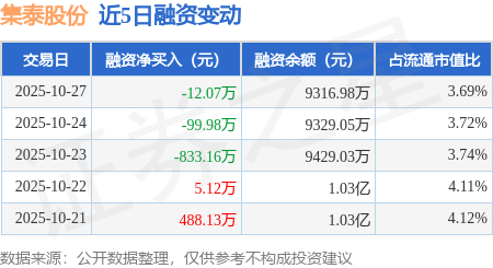 证券之星消息,10月27日,集泰股份(002909)融资买入417.62万元,融资偿还429.69万元,融资净卖出12.07万元,融资余额9316.98万元。