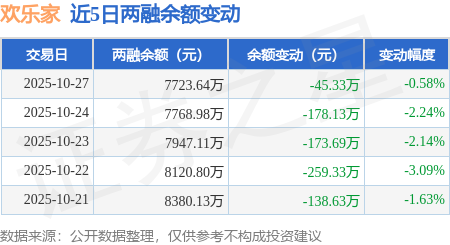 证券之星消息,10月27日,欢乐家(300997)融资买入566.74万元,融资偿还612.07万元,融资净卖出45.33万元,融资余额7723.64万元。