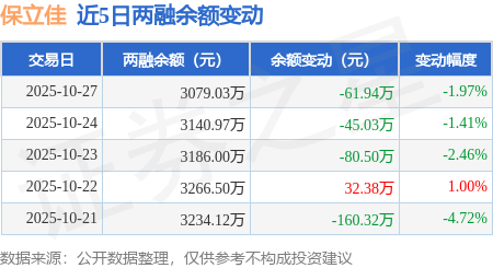 证券之星消息,10月27日,保立佳(301037)融资买入466.92万元,融资偿还528.86万元,融资净卖出61.94万元,融资余额3078.87万元。