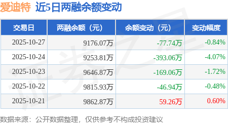 证券之星消息,10月27日,爱迪特(301580)融资买入493.83万元,融资偿还571.58万元,融资净卖出77.74万元,融资余额9175.62万元。