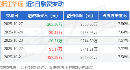 证券之星消息,10月27日,浙江华远(301535)融资买入453.94万元,融资偿还657.24万元,融资净卖出203.3万元,融资余额9550.65万元。