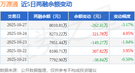 证券之星消息,10月27日,万源通(920060)融资买入691.51万元,融资偿还953.93万元,融资净卖出262.41万元,融资余额8010.81万元。