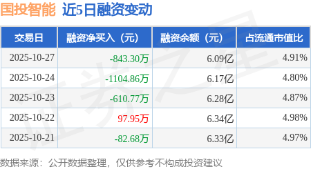 证券之星消息,10月27日,国投智能(300188)融资买入4063.45万元,融资偿还4906.75万元,融资净卖出843.3万元,融资余额6.09亿元。
