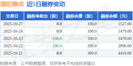 证券之星消息,10月27日,濮阳惠成(300481)融资买入1599.85万元,融资偿还2811.13万元,融资净卖出1211.29万元,融资余额2.21亿元。