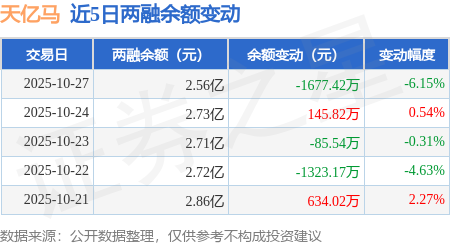 证券之星消息,10月27日,天亿马(301178)融资买入762.94万元,融资偿还2440.36万元,融资净卖出1677.42万元,融资余额2.56亿元,近20个交易日中有11个交易日出现融资净买入。