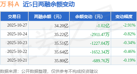 证券之星消息,10月27日,万 科A(000002)融资买入8135.61万元,融资偿还1.84亿元,融资净卖出1.02亿元,融资余额33.97亿元。