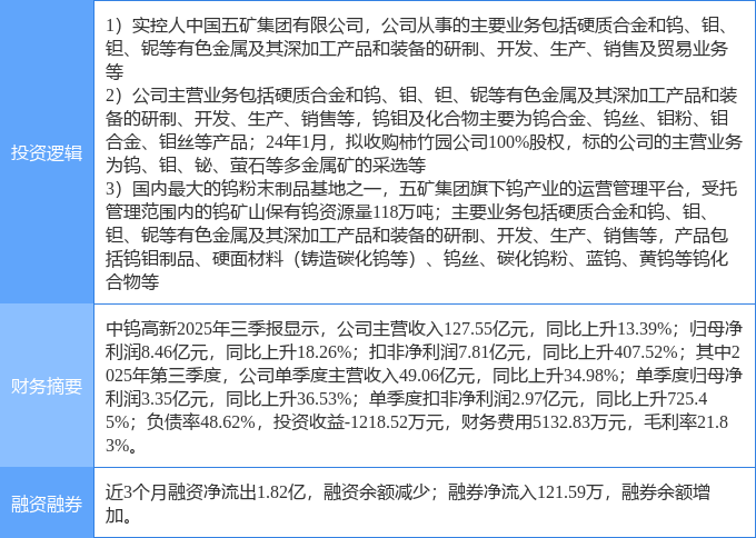 该股为有色 · 钼,有色 · 钨,海南概念概念热股,当日有色 · 钼概念上涨2.03%,有色 · 钨概念上涨1.68%,海南概念概念上涨1.38%。