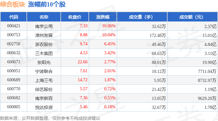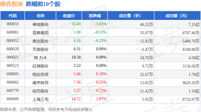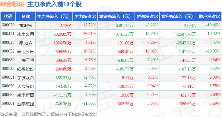 从资金流向上来看,当日综合板块主力资金净流出1146.82万元,游资资金净流出5900.84万元,散户资金净流入7047.66万元。综合板块个股资金流向见下表: