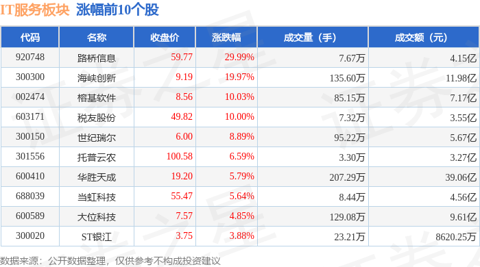 从资金流向上来看,当日IT服务板块主力资金净流出1.05亿元,游资资金净流出4.31亿元,散户资金净流入5.36亿元。IT服务板块个股资金流向见下表: