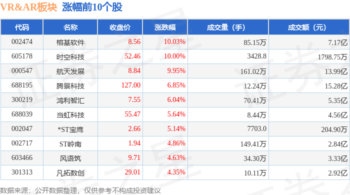 证券之星消息,10月28日VR&AR板块较上一交易日上涨0.23%,榕基软件领涨。当日上证指数报收于3988.22,下跌0.22%。深证成指报收于13430.1,下跌0.44%。VR&AR板块个股涨跌见下表: