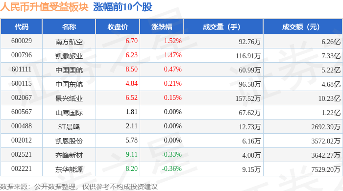 从资金流向上来看,当日人民币升值受益板块主力资金净流出9.32亿元,游资资金净流入2.22亿元,散户资金净流入7.1亿元。人民币升值受益板块个股资金流向见下表: