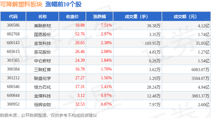 从资金流向上来看,当日可降解塑料板块主力资金净流出4.05亿元,游资资金净流入2.61亿元,散户资金净流入1.43亿元。可降解塑料板块个股资金流向见下表: