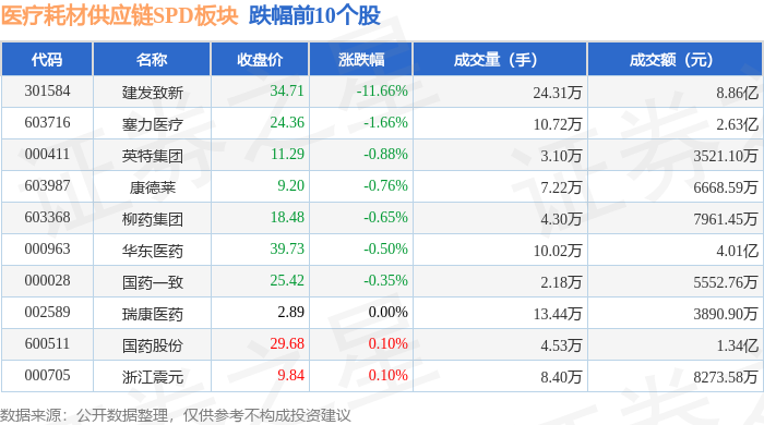 从资金流向上来看,当日医疗耗材供应链SPD板块主力资金净流出1600.74万元,游资资金净流出1.34亿元,散户资金净流入1.5亿元。医疗耗材供应链SPD板块个股资金流向见下表: