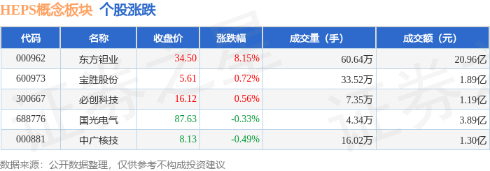证券之星消息,10月28日HEPS概念板块较上一交易日上涨3.06%,东方钽业领涨。当日上证指数报收于3988.22,下跌0.22%。深证成指报收于13430.1,下跌0.44%。HEPS概念板块个股涨跌见下表: